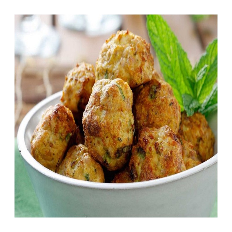 Τηγανίζουμε τα κεφτεδάκια όπως είναι κατεψυγμένα, σε λάδι θερμοκρασίας 150-155 0 C για 6-7 λεπτά, έτσι ώστε να ψηθούν εσωτερικά. Μπορούμε επίσης να τα ψήσουμε σε φούρνο προθερμασμένο στους 180 0C για 15 λεπτά περίπου, αφού πρώτα τα τοποθετήσουμε σε ταψί