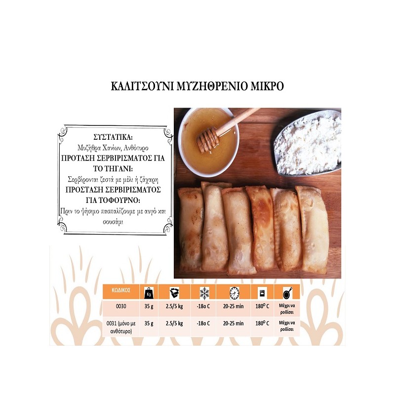 Καλιτσούνια με μυζήθρα και ανθότυρο Α ποιότητας. Διατίθενται σε διάφορα μεγέθη και σχήματα