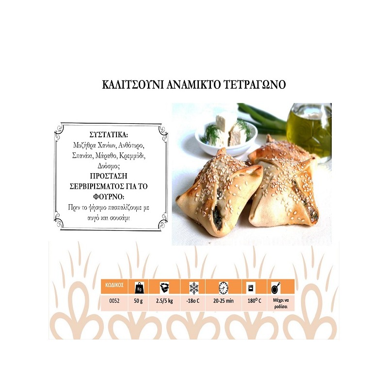 Καλιτσούνια με σπανάκι, μυρωδικά και μυζήθρα - ανθότυρο. Σε σχήμα τετράγωνο