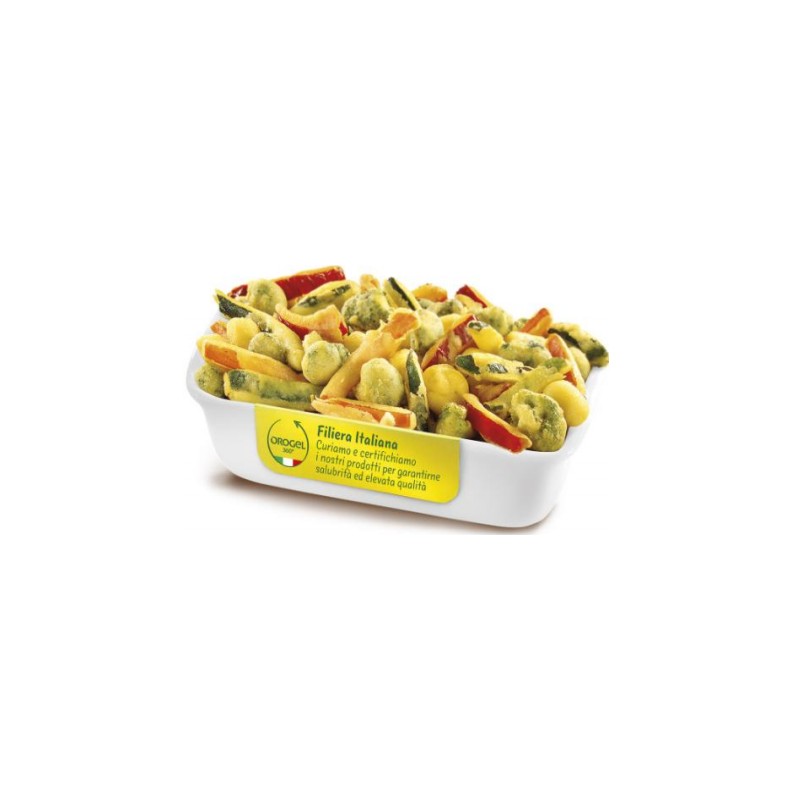 Mix Veggie Bites (Κολοκυθάκι-σπανάκι-κουνουπίδι-καρότο-πιπεριές κόκκινες & κίτρινες-μπρόκολο) πανέ, σε μικρά τεμάχια.